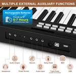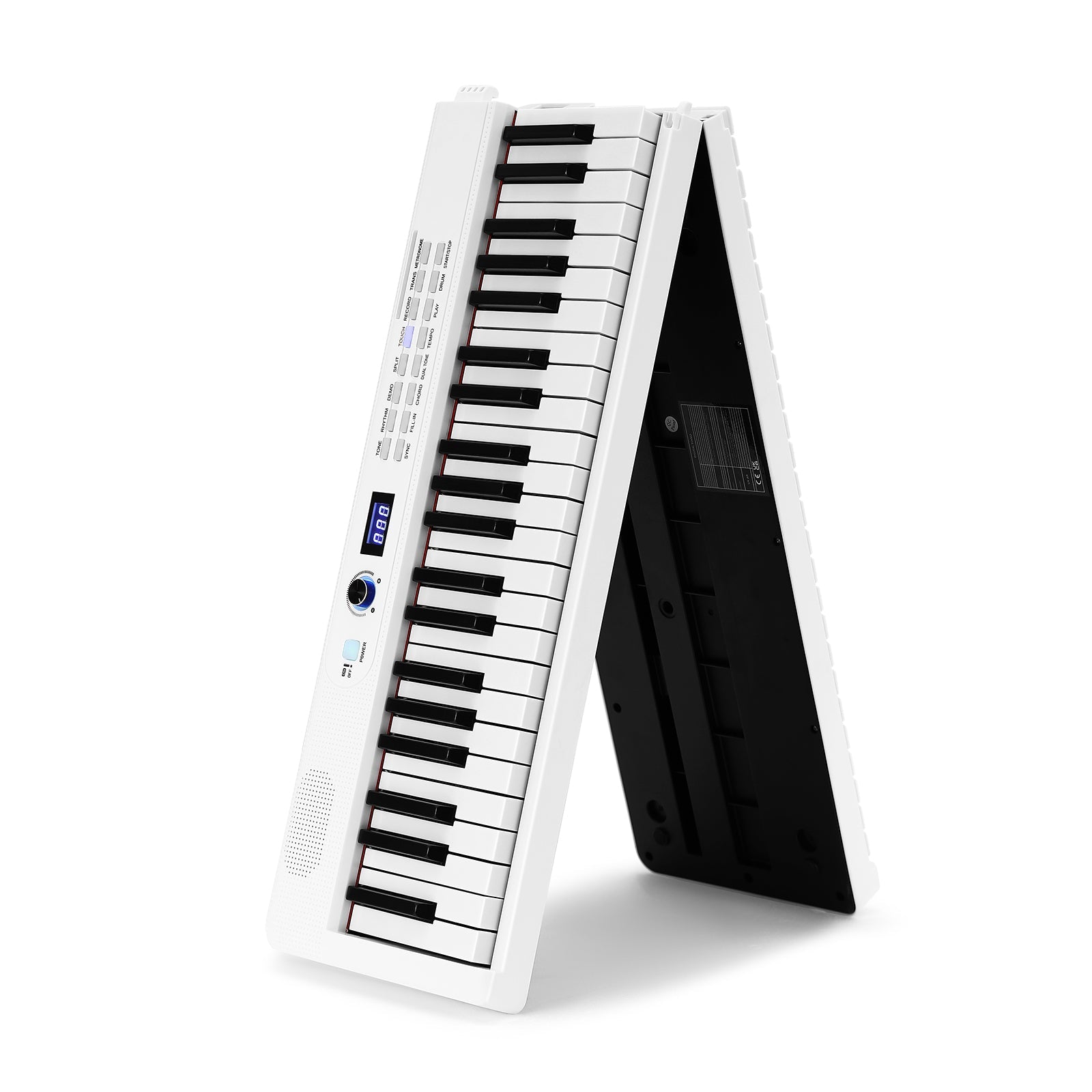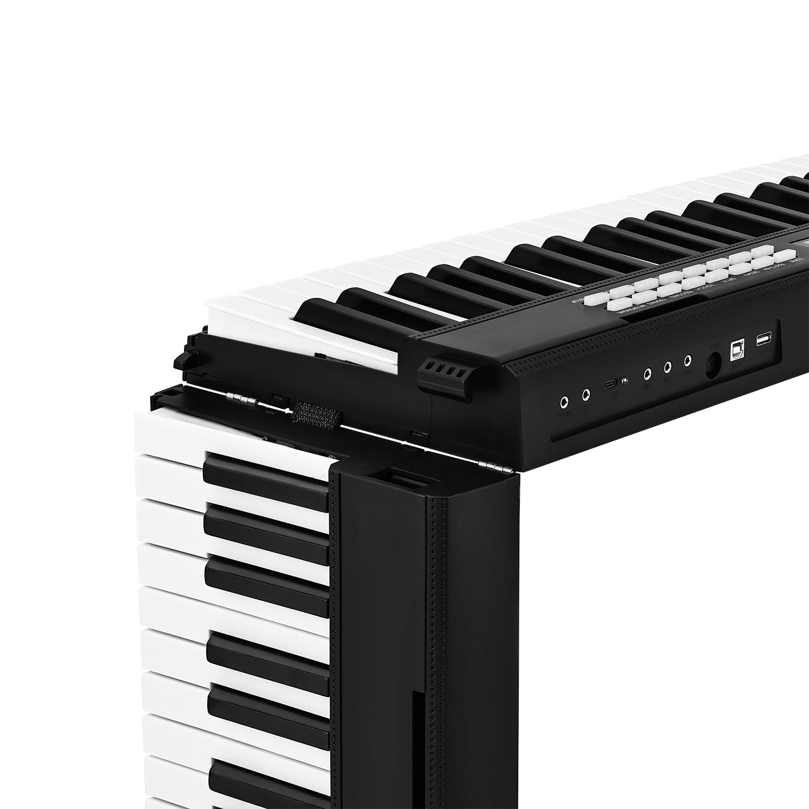 - Faltbares und tragbares Design – Dieses faltbare Piano-Keyboard wiegt nur 4,2 kg und ist zusammengeklappt nur 64 cm lang. Es ist leicht und tragbar und lässt sich daher ideal für Flugreisen zusammenklappen und im Kofferraum verstauen. Dank des neuen Designs mit zwei Stromversorgungsoptionen (Netzteil und Akku) genießen Sie über 8 Stunden kabellosen Spielspaß.
