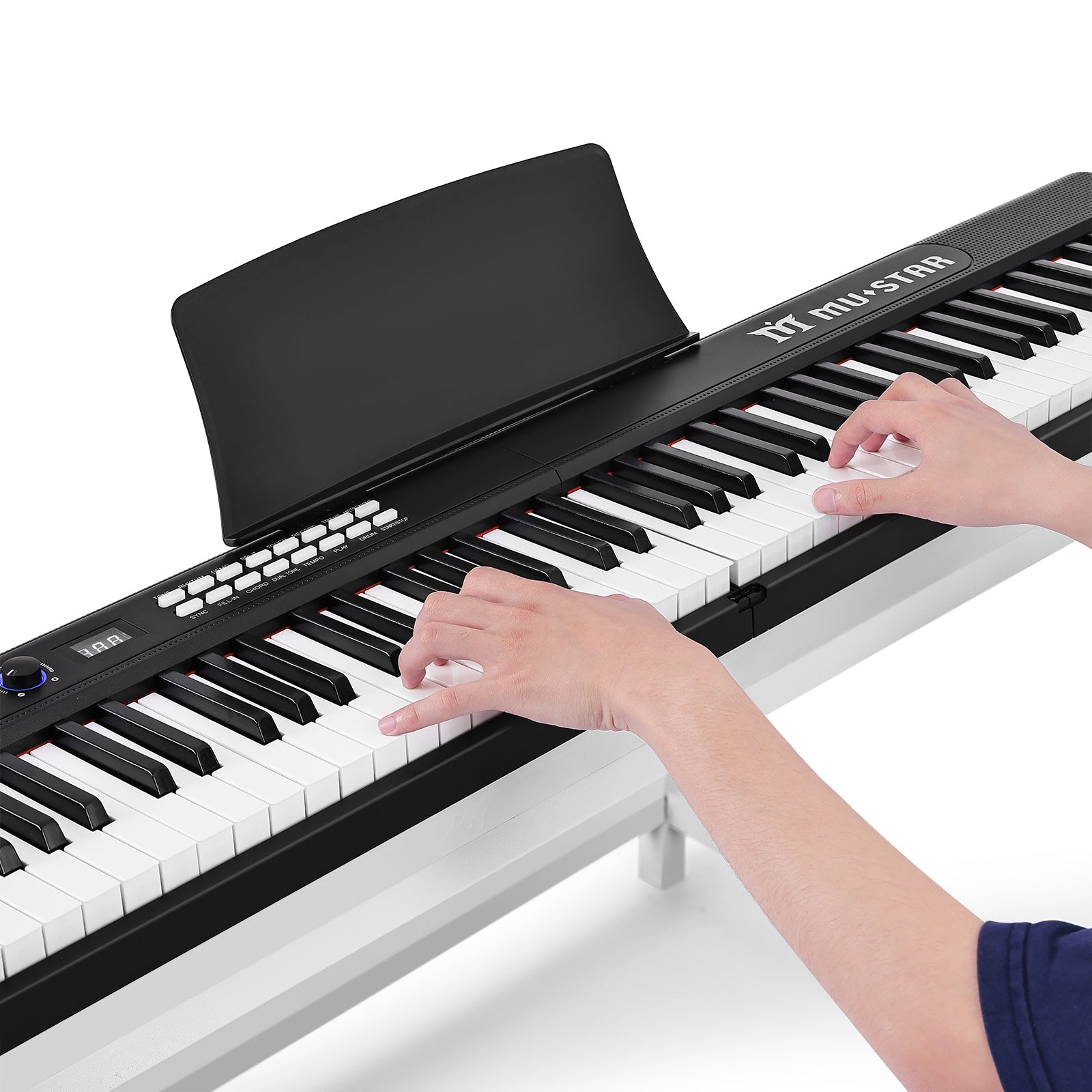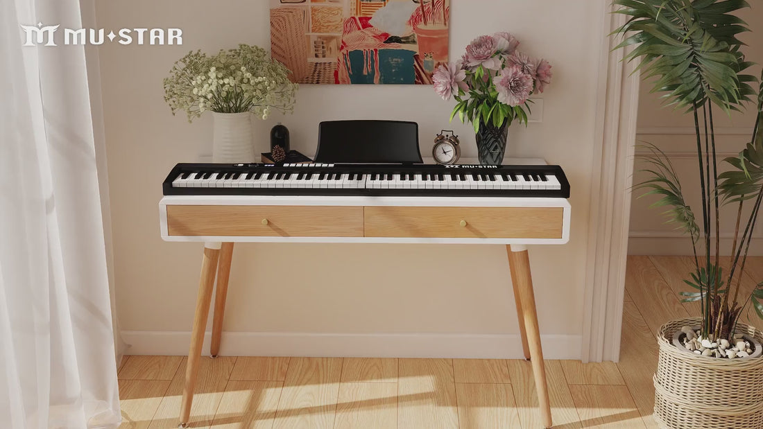 - Vielfältige Lernfunktionen – Das MUSTAR E-Piano bietet Funktionen wie automatische Akkorderkennung, Split-Funktion, Dual-Tone-Modus, Aufnahme-/Wiedergabefunktion, Transponierung, Audio-Ein-/Ausgang, Drumkit u. v. m. und eröffnet damit unbegrenzte Möglichkeiten der Musikproduktion. Für interaktives Lernen und Selbststudium können Sie Ihr Smartphone oder Ihren Computer per USB/MIDI oder drahtlos verbinden.