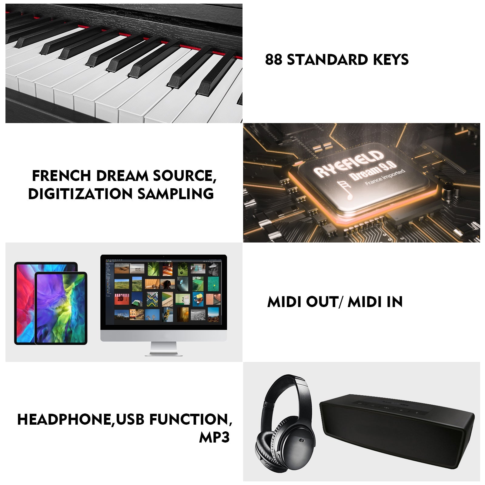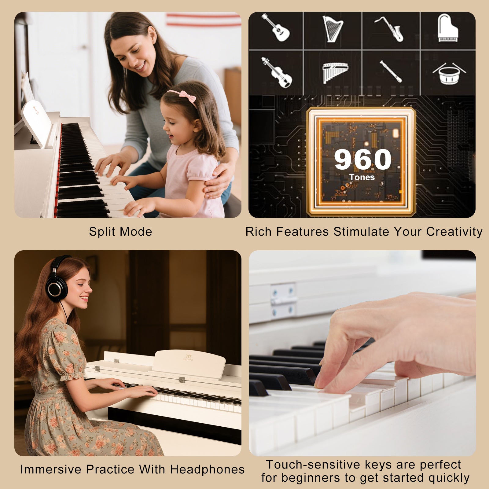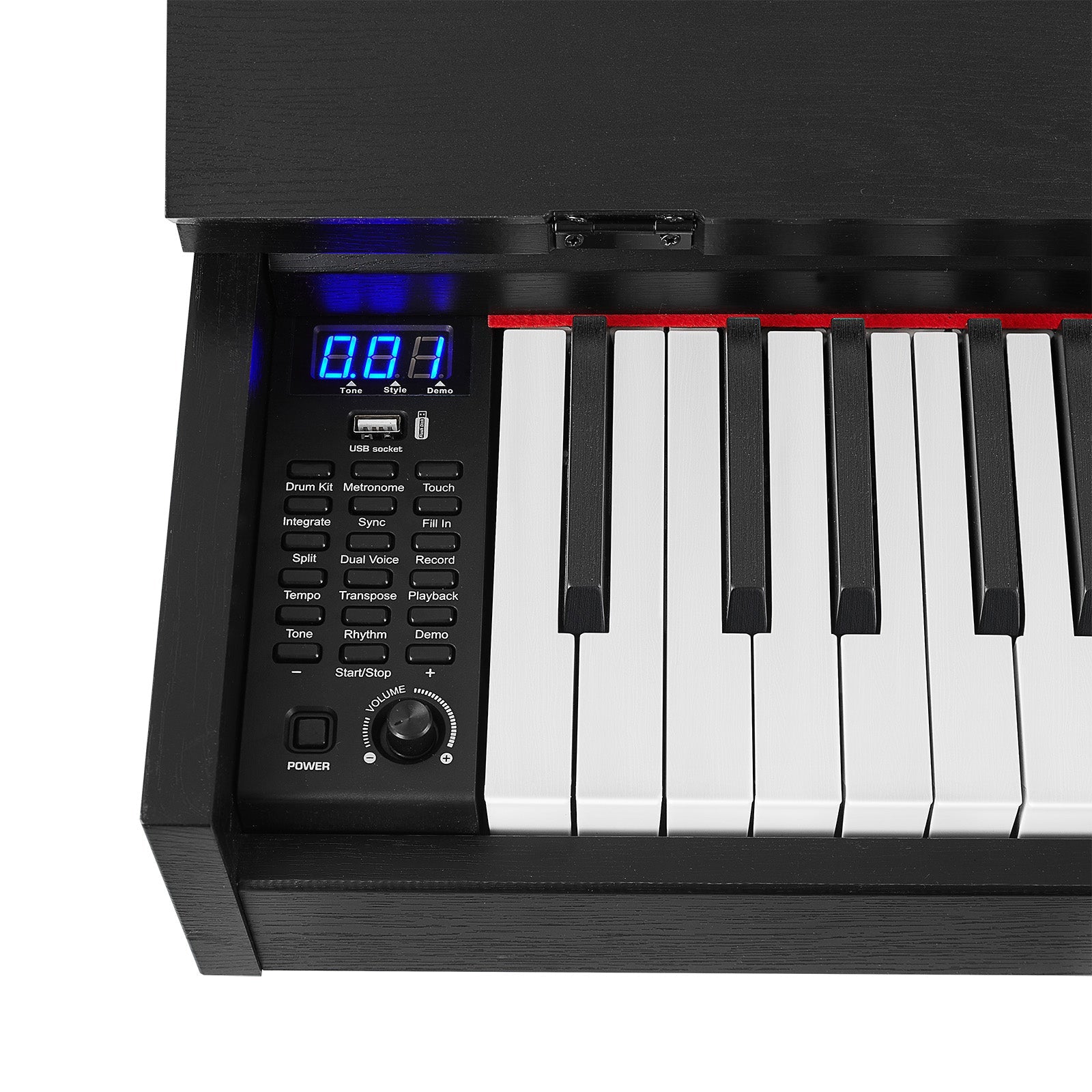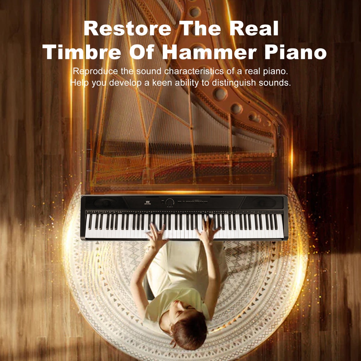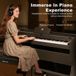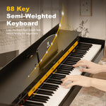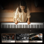 - ♪. Das vollwertige Digitalpiano mit 88 Tasten verfügt über halbgewichtete Tasten , die jede Nuance Ihres Anschlags präzise wiedergeben. Spielen Sie kräftig für lautere Töne oder sanft für leisere – für ein authentisches Klaviergefühl.