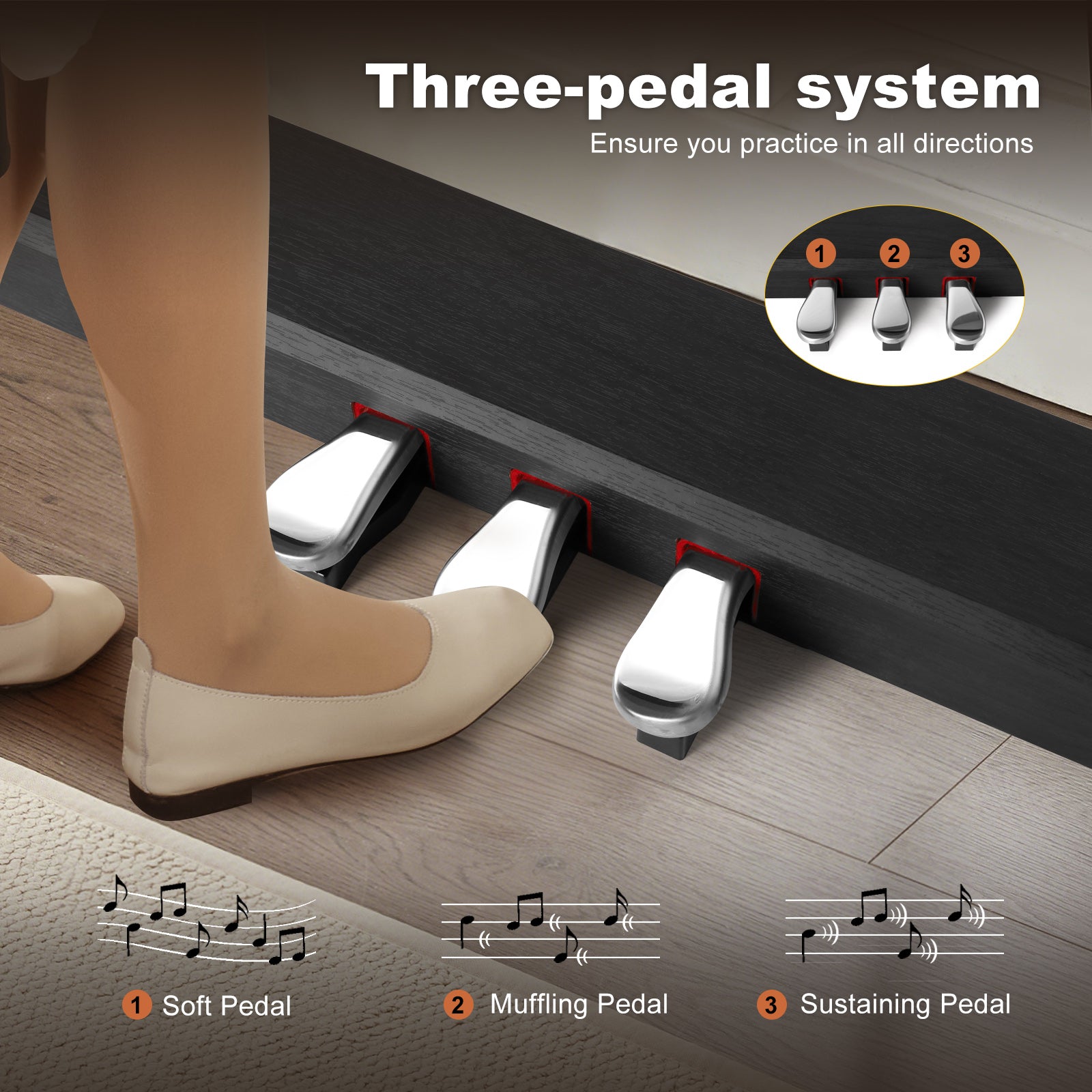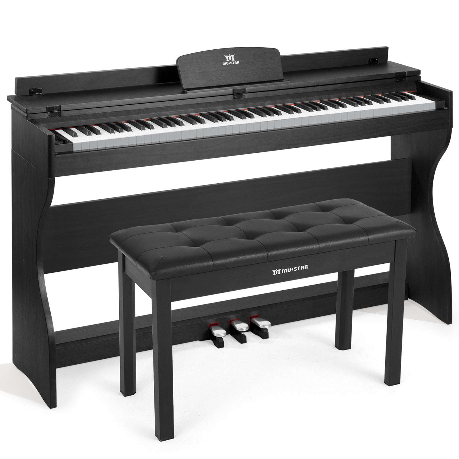 MUSTAR MEP-821/921, Digitalpiano mit 88 halbgewichteten Tasten in E-Dur, Holzständer, 3 Pedale, Klavierbank